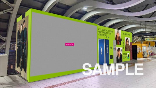 東京メトロ銀座線渋谷駅3Fホーム「シブハコビジョン」(改札内)では、表紙のカットをコラージュした大型ラッピング+撮影時の模様とメンバーのコメントを収めたムービーを掲出いたします。