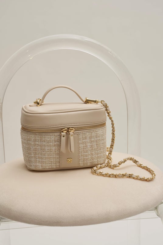 上品なツイード調素材を使用したバニティバッグ。