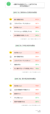 一番好きな焼肉のチェーン店*について、それぞれ好きな理由を聞きました。