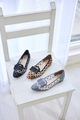 チュール×ドット×リボンの組み合わせが、足元をさりげなく華やかに演出。