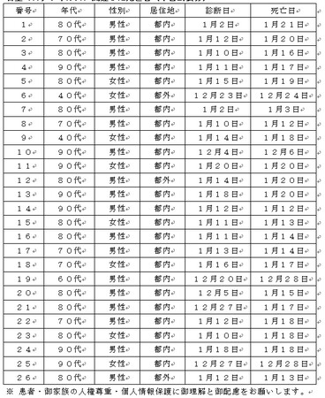 都内で新型コロナウイルスに感染した方が死亡されましたのでお知らせします。