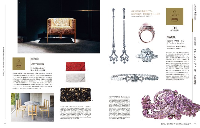 委員会がJAXURYの視点に基づいてファッション、美容、宿泊、インテリア、器・道具、飲料、茶菓子……オールジャンルから選び抜いて紹介した企画は、読者からもブランドの担い手からも大きな反響を呼びました。2回目となる今回は、新たに部門賞10賞を決定。「美」部門賞では海外セレブも魅了するNIKAWAのリアル&ハイジュエリーが、「本来感」部門賞でヤンマーX47のクルーザーや「唯一無二」部門賞でポーラの美容文化が選ばれるなど、紹介されたブランドは計120にのぼりました。