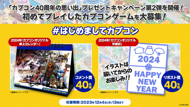 さらにリポストしていただいた方の中から抽選で40名様に、2024年「カプコンオリジナル年賀状」が当たるリポスト賞も。どんな絵柄の年賀状かは届いてからのお楽しみ!