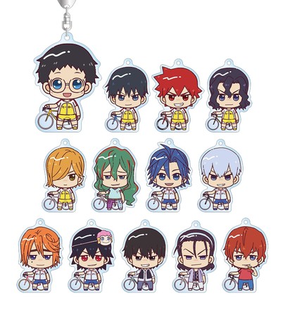 小野田 坂道、今泉 俊輔、鳴子 章吉、手嶋 純太、青八木 一、巻島 裕介、真波 山岳、黒田 雪成、葦木場 拓斗、新開 悠人、荒北 靖友、東堂 尽八、新開 隼人がちょこんと立っているちびキャラを新たに描き起こしました。