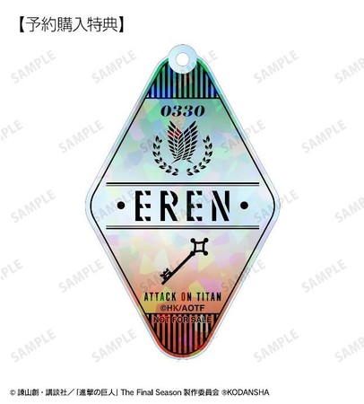 当商品を1BOX、または単品にて1BOX相当数ご注文ごとに、予約購入特典として「エレン ホログラムモチーフアクリルキーホルダー AMNIBUS限定特典」を付属いたします。