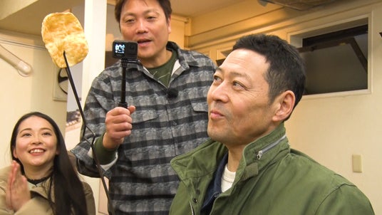 続いては、手焼き煎餅体験ができる「十人十色」へ。焼いた大きさによって「見習い」や「名人」、「超人」とランク付けされ、大きく焼けば焼くほど好成績だと認められるのだとか。東野が煎餅を焼いているとアクシデントが!?