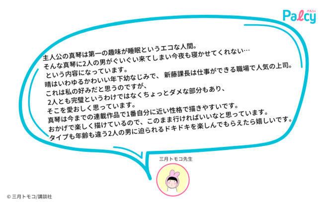 『男たちは寝かせてくれない』は少女・女性マンガアプリPalcyにて連載され、毎週土曜日に更新予定。