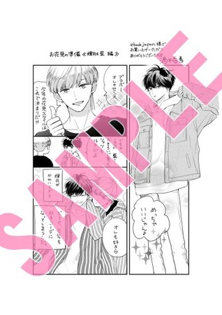 今回の描きおろしペーパーは書店ごとに異なっており、ebookjapanでは「輝月&藍(あいる)コラボ」、コミックシーモアでは「輝月&周吾コラボ」、まんが王国では「輝月&深コラボ」、LINEマンガでは「輝月&水帆コラボ」とお花見の準備をする5人の様子が描かれている特別版です!