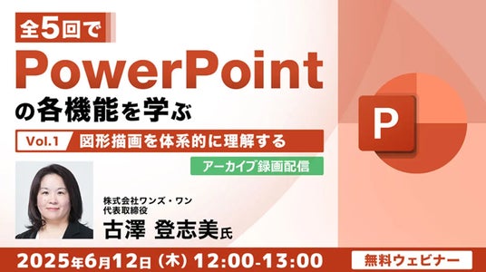 株式会社クリーク・アンド・リバー社(C&R社)は6月12日(木)、イチからPowerPoint(PPT)を学びたい方や企画書やプレゼン資料を作成している方を対象に、今年3月に開催したオンラインセミナー「全5回でPowerPointの各機能を学ぶ(1) 図形描画を体系的に理解する」のアーカイブ映像を無料配信します。