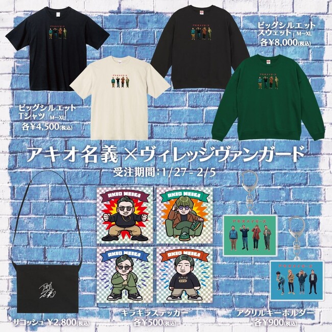 2023年1月27日(金)より、異才のカメレオンラッパー【アキオ名義】のヴィレッジヴァンガード限定コラボグッズがオンラインストアにて発売決定!!期間限定のオンライン受注販売のみになりますのでお見逃しなく!