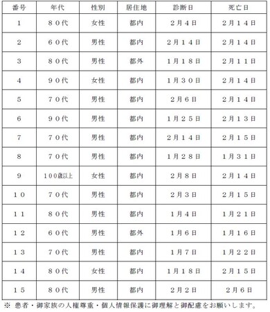 都内で新型コロナウイルスに感染した方が死亡されましたのでお知らせします。