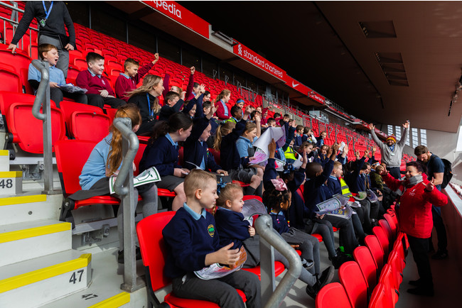 3月のイギリスにおける「ワールド・ブック・デー」には、リバプールの学校に通う300人以上の生徒が講談社とリバプールFCの財団(以下LFC財団)によってアンフィールドに招かれ、講談社とリバプールFCのコラボマンガなどを楽しんだ後、お土産として講談社の塗り絵を受け取りました。自宅では好きな本の感想を書いたしおりを作るという課題に取り組み、最優秀作品はアンフィールドでの主催試合のチケットが贈られ、優秀作品は学校のしおりとして採用される予定です。