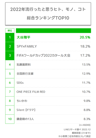 ■2022年流行ったと思うヒトやコトは、「大谷翔平」「SPY×FAMILY」「FIFAワールドカップ2022カタール大会」が上位