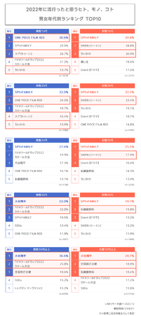 2022年流行ったと思うヒト、モノ、コトを男女年代別でみていきます。