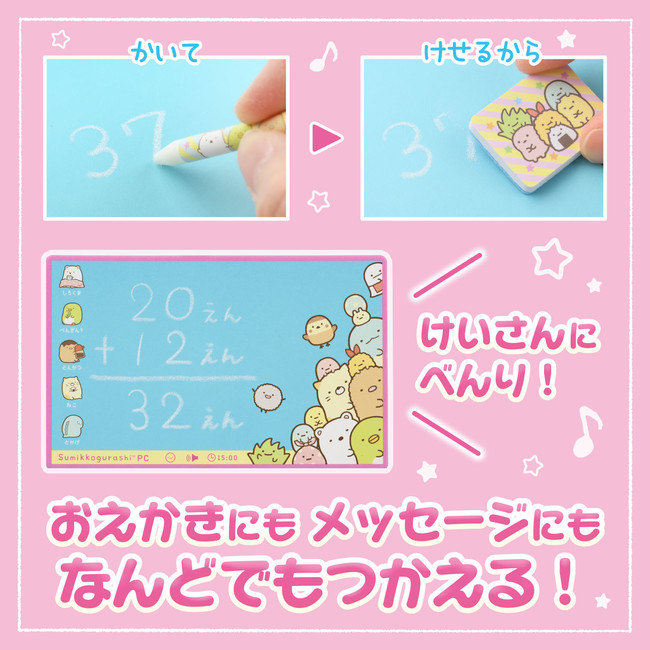 メイン付録は「パソコンふうこくばんボード」。すみっコぐらしのかわいいケースをあけると、まるで本物のパソコンのような姿に大変身! パソコン画面のところが“こくばん”になっている、超豪華仕様です。