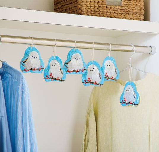ひもを通してクローゼットのハンガーに吊るしたり、靴箱の隙間に並べたり、場所を選ばないコンパクトなサイズ感です 。無機質になりがちな収納スペースが、シマエナガの憩いの場へと早変わりします。