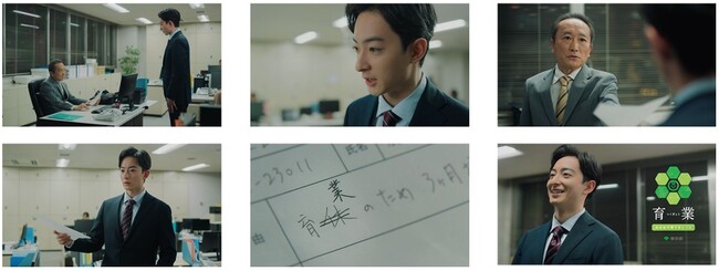濱正悟さん演じる男性社員。意を決して部長に育休を申し出ます。「引継ぎはしっかりして、何かあれば電話で対応…」と必死に説明しますが、部長は渋い顔。申請書を突き返して「自分の仕事を心配しろ」と一言。申請書の文字は「育業」に修正されています。育児はパパの大切な仕事です。