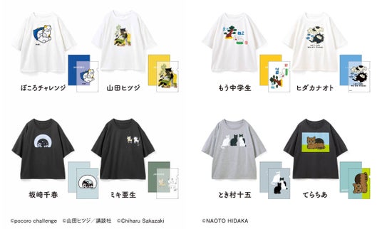 「地域猫活動応援チャリティー2026」プロジェクトに賛同したクリエイター・キャラクターが集合。耳先をV字カットした「地域猫」をテーマにした、Tシャツ・クリアファイルそれぞれ22種類のデザイン。