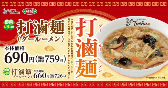 中華料理店「れんげ食堂Toshu」「中華東秀」を展開しているイオングループのオリジン東秀株式会社(本社:東京都調布市/代表:沢村 弘也)は、2月21日(水)より、「打滷麺」を期間限定で販売いたします。