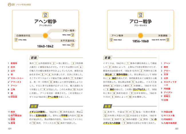 本書では、高校世界史で学習する内容を、300個の「できごと」を軸に整理しています。さらに、ひとつひとつのできごとを「駅」に見立て、それらを国別の「路線図」としてまとめることで、できごとどうしのつながりや歴史の流れを俯瞰して理解することができるようにしました。