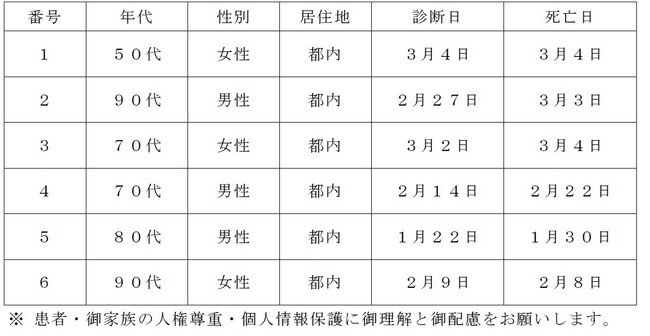 都内で新型コロナウイルスに感染した方が死亡されましたのでお知らせします。