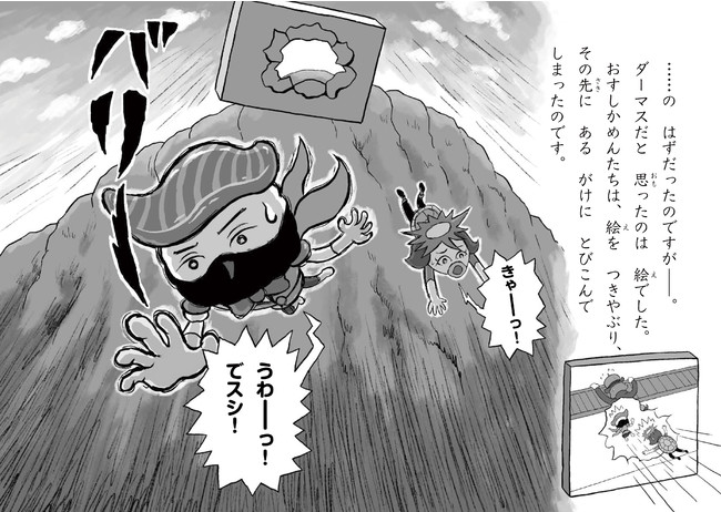 今回はほかにも「絵を使ったあそび」がモチーフとなっており、絵の上手な敵の怪盗ダーマスによる「まちがいさがし」をはじめ、読者の目もあざむく数々のしかけが用意されている。