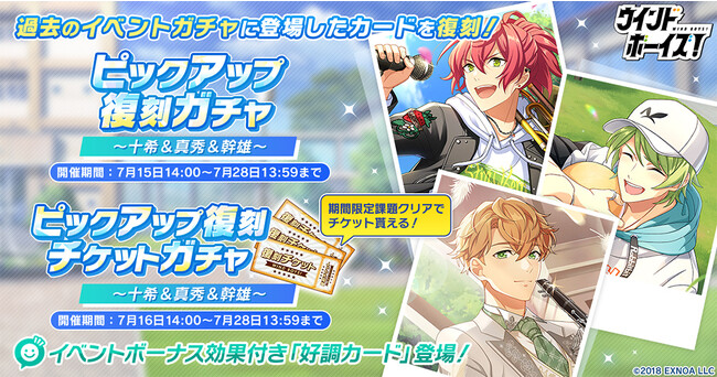 ■期間限定「ピックアップ復刻ガチャ~十希&真秀&幹雄~」7月15日(土)より開催!
