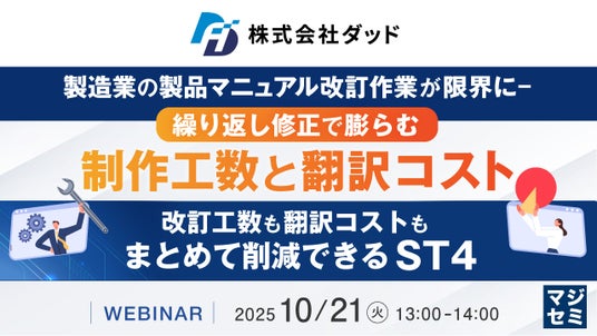 マジセミ株式会社は「製造業の製品マニュアル改訂作業が限界に-繰り返し修正で膨らむ制作工数と翻訳コスト」というテーマのウェビナーを開催します。