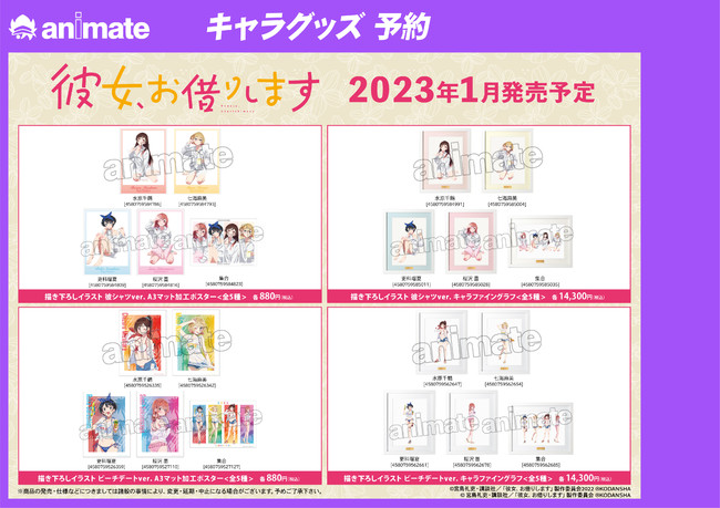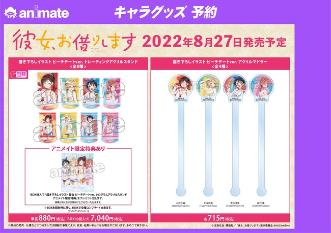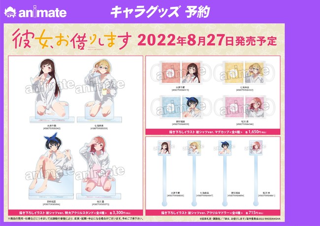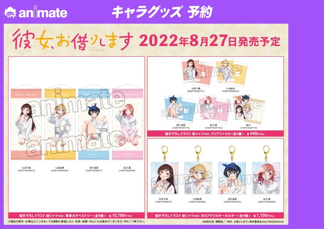 2022年8月27日(土)よりアニメイト対象店舗にて「『彼女、お借りします』アニメイトフェア」の実施が決定いたしました。
