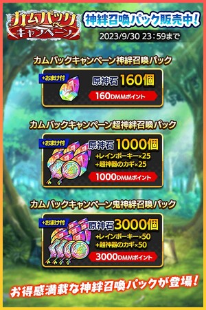 SSR確定ガチャチケットに加えてレインボーキー・超神器のカギもつく「鬼神絆召喚パック」