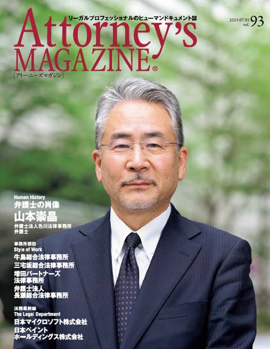 プロフェッショナル・エージェンシー事業を展開する株式会社クリーク・アンド・リバー社(以下C&R社)の法曹分野の子会社 株式会社C&Rリーガル・エージェンシー社(以下CRLA社)は、法曹界のヒューマンドキュメント誌『Attorney's MAGAZINE [アトーニーズマガジン] vol.93』を2025年7月1日に発行し、Webサイト版(Attorney's MAGAZINE Online)にも記事を公開しました。