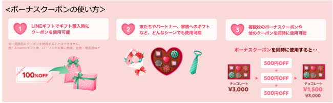 バレンタイン当日まで残り4日となりますが、期間中であればギフトを贈るたびに、支払金額の8%~最大500%分のボーナスクーポンを獲得することができます。感謝を伝えきれていない身近な大切な人たちへありがとうの気持ちとともにLINEギフトを贈ってみてはいかがですか?