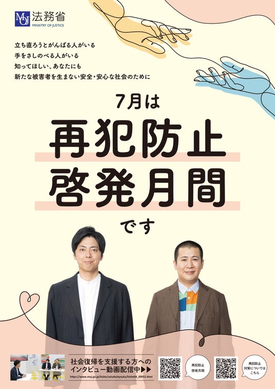また、同業務の一環として、再犯防止啓発月間ポスターも制作しました。法務省の関係機関、地方公共団体、警察署、大学など様々な場所で掲示される予定です。