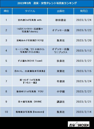 2023年3月 書泉・女性タレント写真集売上ランキング