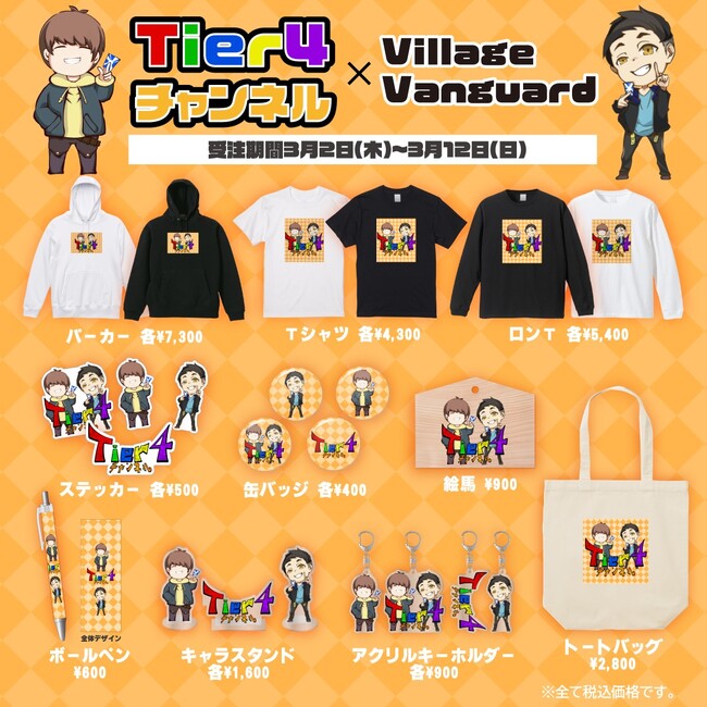 【Tier4チャンネル】のヴィレッジヴァンガード限定グッズが発売決定!