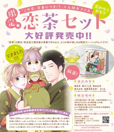 狭山茶の茶園を舞台に繰り広げられる職人男子×不器用女子のじれキュン・ラブコメ『この恋、茶番につき!?』(講談社「BE・LOVE」にて好評連載中)。作品の舞台・埼玉県入間市とスペシャルコラボした狭山茶を存分に楽しめる特別なティーバッグセット、初回発売分は即完売!