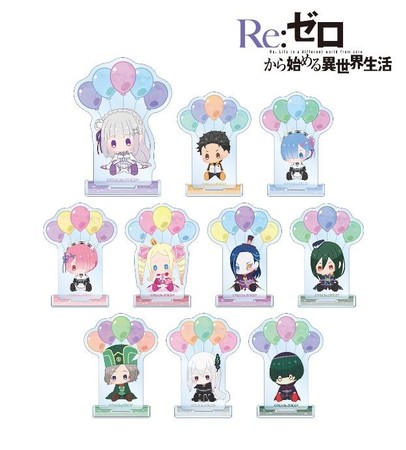 エミリア、スバル、レム、ラム、ベアトリス、ロズワール、クルシュ、オットー、エキドナ、ペテルギウスをお空に風船でぷかぷかと浮いたぬいぐるみをイメージして描き起こしました。