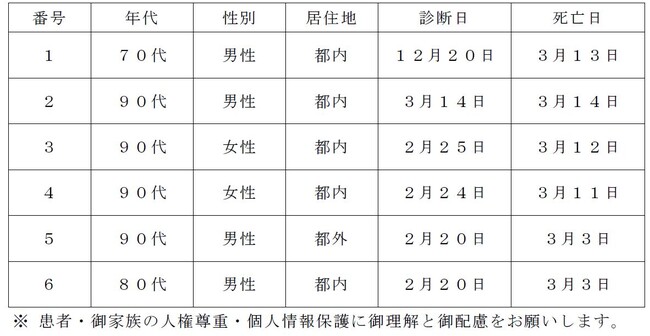 都内で新型コロナウイルスに感染した方が死亡されましたのでお知らせします。