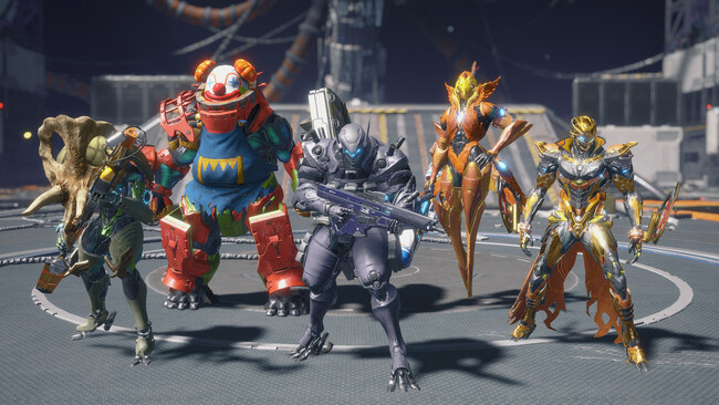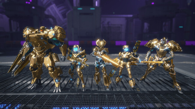 特定の条件を満たしたり、繰り返し遊ぶことで、特別なスーツスキンをはじめとした、このゲームモードでしか得られない報酬を用意しています。画像にあるような黄金に輝くエグゾスーツスキンとウェポンスキンもあります。お楽しみに!