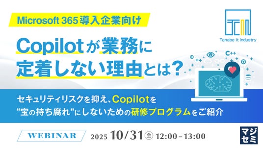 マジセミ株式会社は「【Microsoft 365導入企業向け】Copilotが業務に定着しない理由とは?」というテーマのウェビナーを開催します。