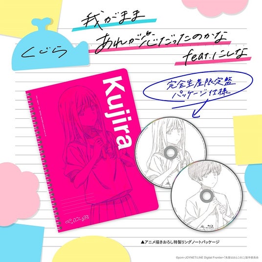 CDは、両楽曲の収録に加えて、アニメ描きおろし絵柄のリングノートの中にCDが入った豪華仕様となっている。