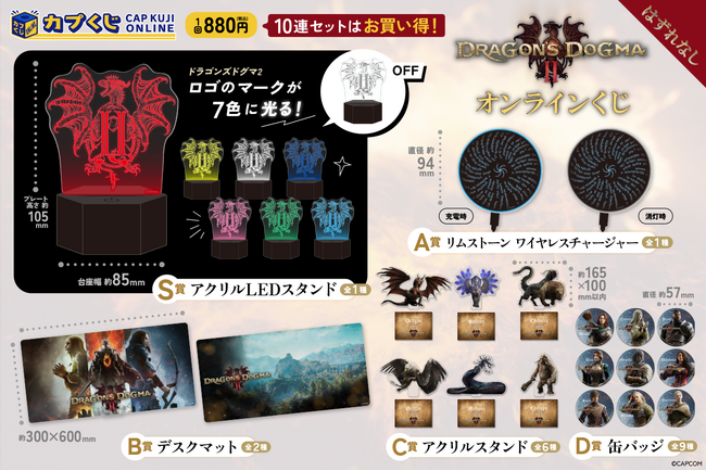 株式会社カプコンが運営するオンラインくじサービス「カプくじオンライン」(以下、「カプくじ」)にて、カプコンの大人気オープンワールドアクションRPG「ドラゴンズドグマ」シリーズの新作『ドラゴンズドグマ 2』のオリジナル商品を展開いたします。
