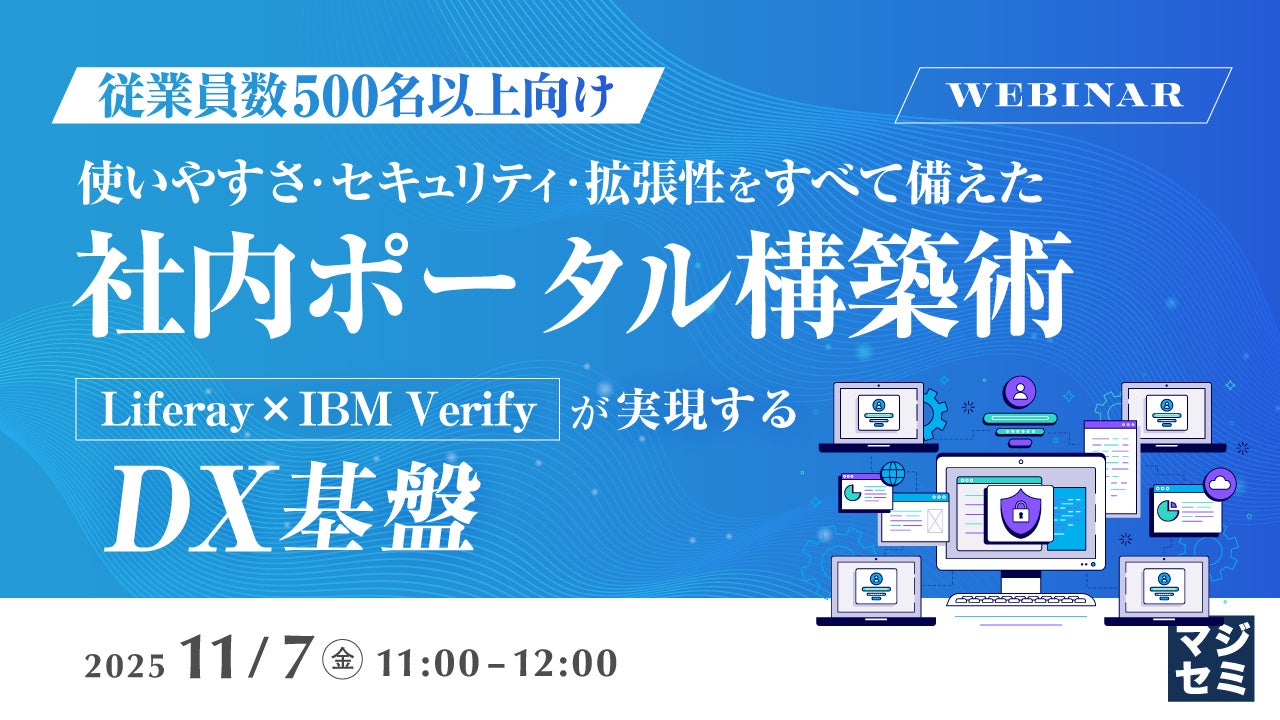 マジセミ株式会社は「【従業員数500名以上向け】使いやすさ・セキュリティ・拡張性をすべて備えた社内ポータル構築術」というテーマのウェビナーを開催します。