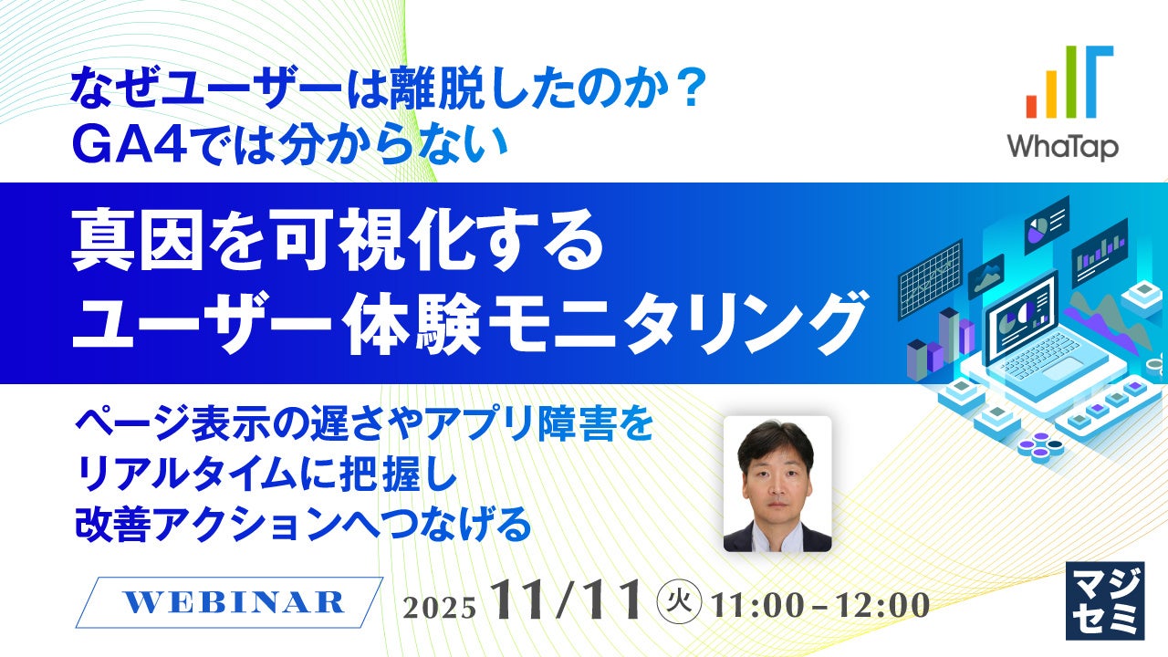 マジセミ株式会社は「なぜユーザーは離脱したのか?GA4では分からない、真因を可視化するユーザー体験モニタリング」というテーマのウェビナーを開催します。