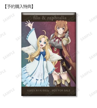当商品をBOX、または単品にて1BOX相当数ご注文ごとに、予約購入特典として「フィーロ&ラフタリア スクエア缶バッジ AMNIBUS限定特典」を付属いたします。