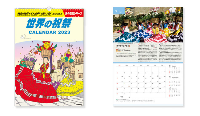 1979年創刊の旅行ガイドブックのパイオニア「地球の歩き方」のカレンダー。世界各地で開催されるお祭りを各月で紹介しています。