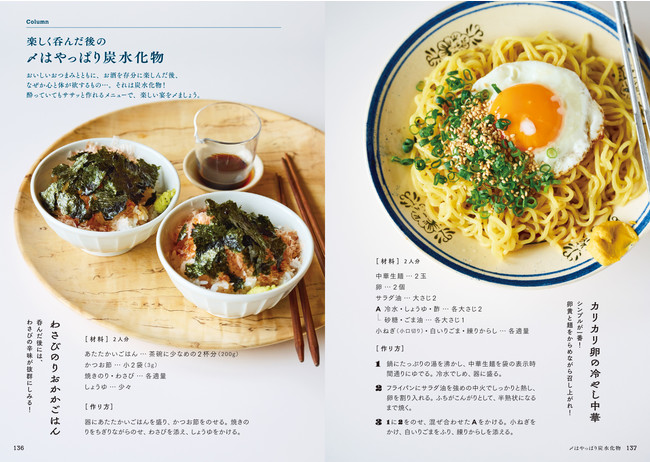 そのほか、コラムとして、夏の定番おつまみ・枝豆のおいしい食べ方や、〆の炭水化物のレシピまで紹介していて、これ1冊あれば家呑みがますます楽しくなること間違いなし。著者は、作りやすくておいしいレシピに定評がある料理研究家の市瀬悦子さん。とにかく簡単で気取らないレシピばかりなので、ペアリングうんぬんなど難しいことは考えず、家ならではのリラックス感でおいしいお酒とおつまみを心ゆくまで楽しめます。