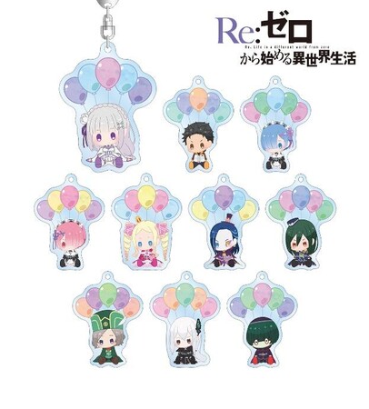 エミリア、スバル、レム、ラム、ベアトリス、ロズワール、クルシュ、オットー、エキドナ、ペテルギウスをお空に風船でぷかぷかと浮いたぬいぐるみをイメージして描き起こしました。