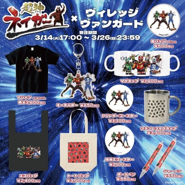 2023年3月14日(火)より、大人気ご当地ヒーロー【超神ネイガー】のヴィレッジヴァンガード限定グッズがオンラインストアにて発売決定!!期間限定、オンライン受注販売のみとなりますのでお見逃しなく!