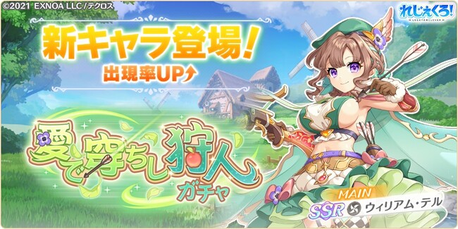合同会社EXNOA(本社:東京都港区、CEO:村中 悠介、URL:https://games.dmm.com/)が運営するDMM GAMESにおいて、真の英雄となる王道ファンタジー『れじぇくろ!~レジェンド・クローバー~』(https://www.legend-clover.net/)は、愛の肉食系狩人「ウィリアム・テル」が新たな衣装で登場!さらに、ウィリアム・テルの実装を記念した、肉食系狩人セットが販売中です。